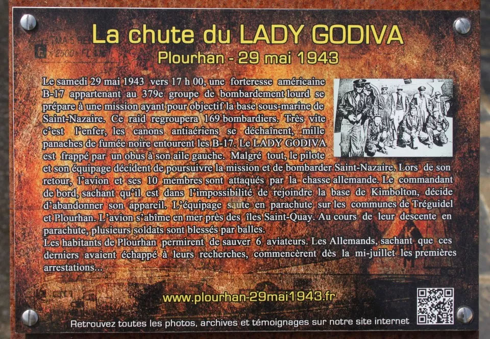 Going west on the N12, take the D6 north-west to the D4 Rue des Plages, which you take north-east until you switch over to the D51 and head north until you reach Plourhan. The monument is in Place de la Victoire, behind the city's monument for the dead.