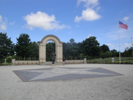 The memorial commemorates General Eisenhower and his efforts in organizing the Normandy Invasion as the Supreme Allied Commander. The roundabout is filled with gravel with a large star in the center and an arch behind the star.